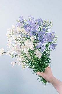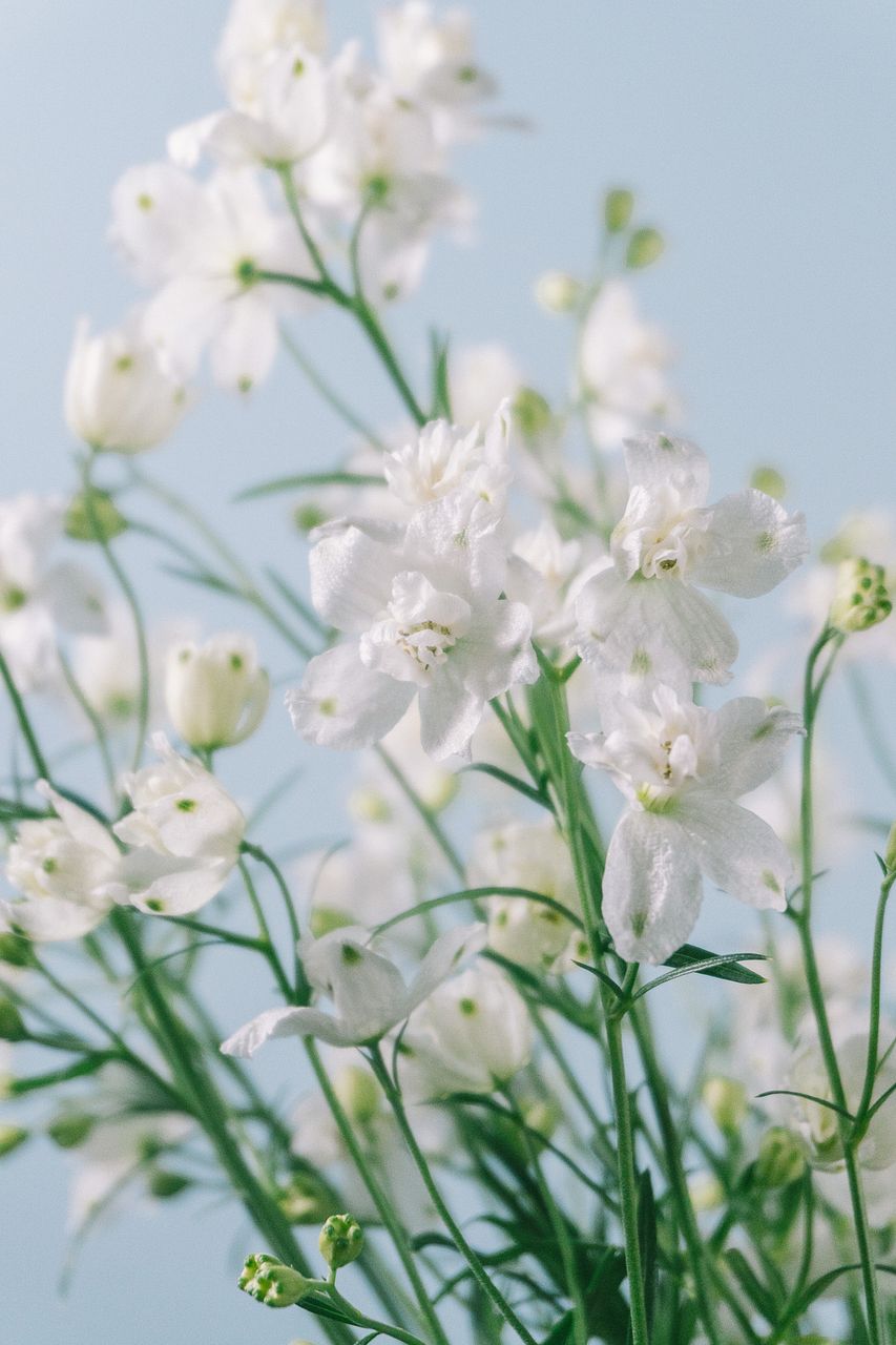 デルフィニウムの名前は咲く前のつぼみの形がイルカに似ていることから、ギリシャ語でイルカを意味する「delphis」が由来🐬