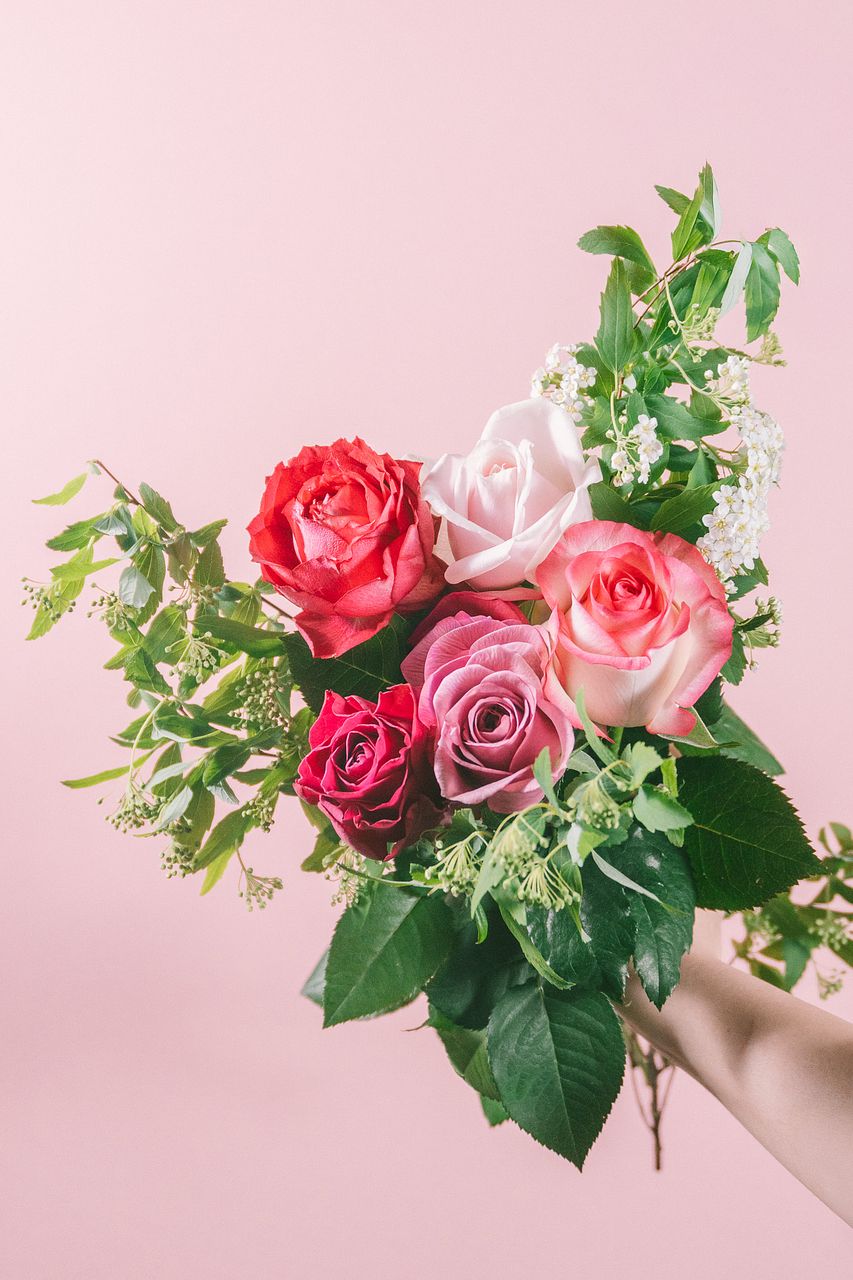 ピンク色の様々なバラを贅沢に、6〜7本をセレクト🎀