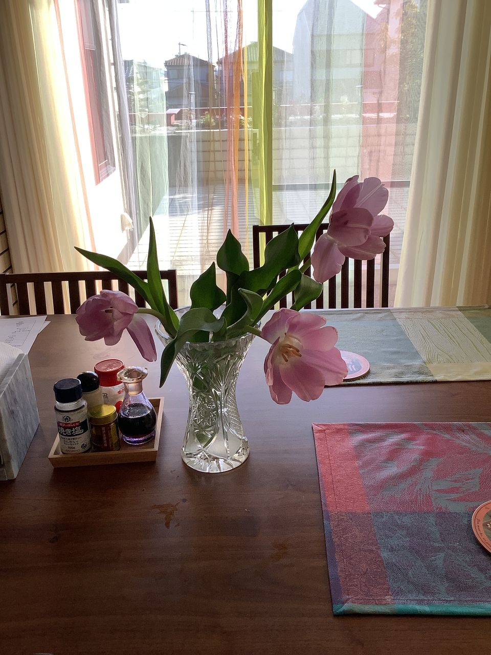 柔らかいピンクの可愛いチューリップが届きました。鮮度も良く暫く楽しめそうです。