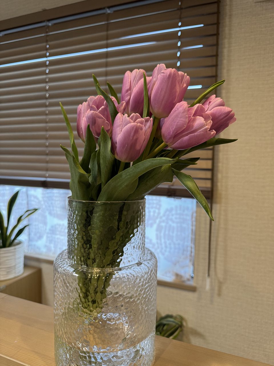 花を飾る生活に憧れていましたが、これまでチューリップを自分で買ったことはありませんでした。 今回プロにお任せして購入してみて、本当によかったです。 赤いチューリップがとてもきれいで、部屋がぱっと明るくなりました。 おすすめされていた花瓶も一緒に購入したところ、本数が花瓶にちょうどよく、バランスよく素敵に飾ることができました。 自分ではどのくらいの本数を選べばいいのか分からないので、プロに任せられるのは安心だと感じました。 花のある暮らしを気軽に楽しめて嬉しいです。