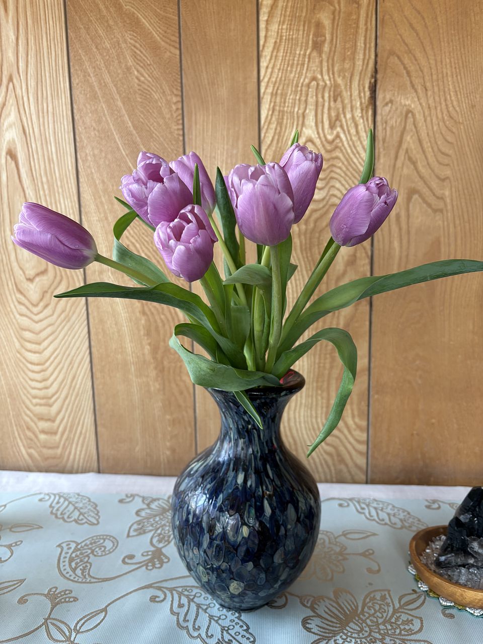2個頼んでみましたー! 違う色来るかなと期待していましたが、同じ色が2個入ってました。 素敵なカラーなのでヨシ!紫チューリップも素敵。