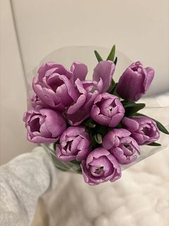 今回2回目の注文です! 前回は娘の誕生日、今回は推しの誕生日に合わせて注文しました♪ なんと偶然にも、その日の誕生日花「紫のチューリップ🌷」でとても嬉しかったです😆 蕾はなく、一輪花びらが落ちているのもありましたが、ほぼ綺麗な状態でした。 おまかせチューリップ10本便はずっと気になっていたので、今回ギリギリ間に合ってよかったです。 長持ちしてくれたらいいな〜と思ってます。