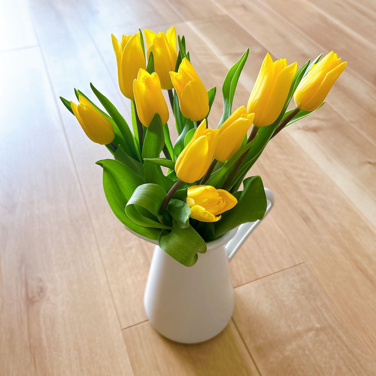 イキイキとしたチューリップが届きました。黄色は元気をくれるので、部屋が明るくなりました!