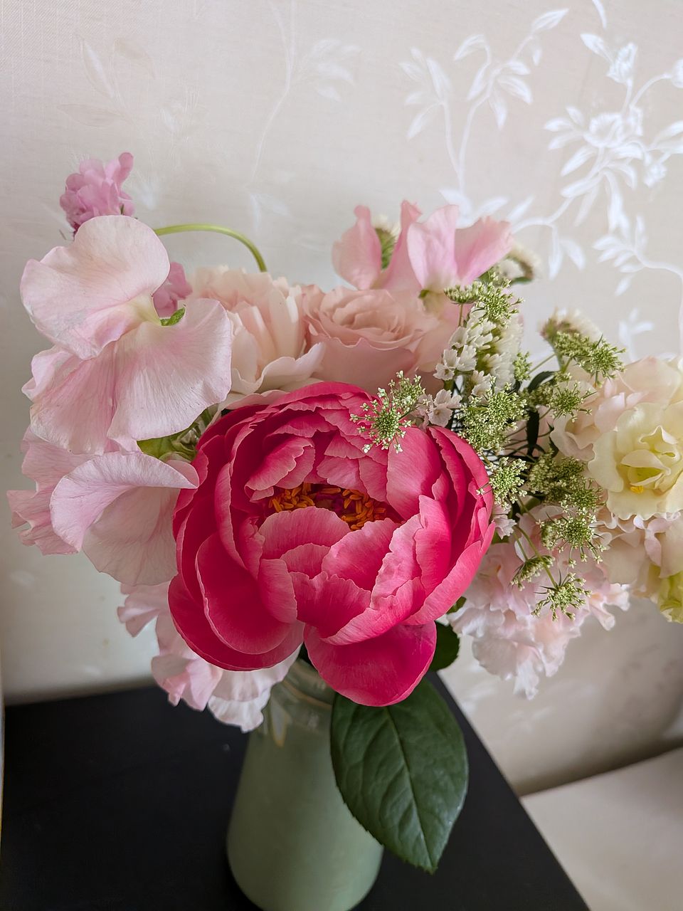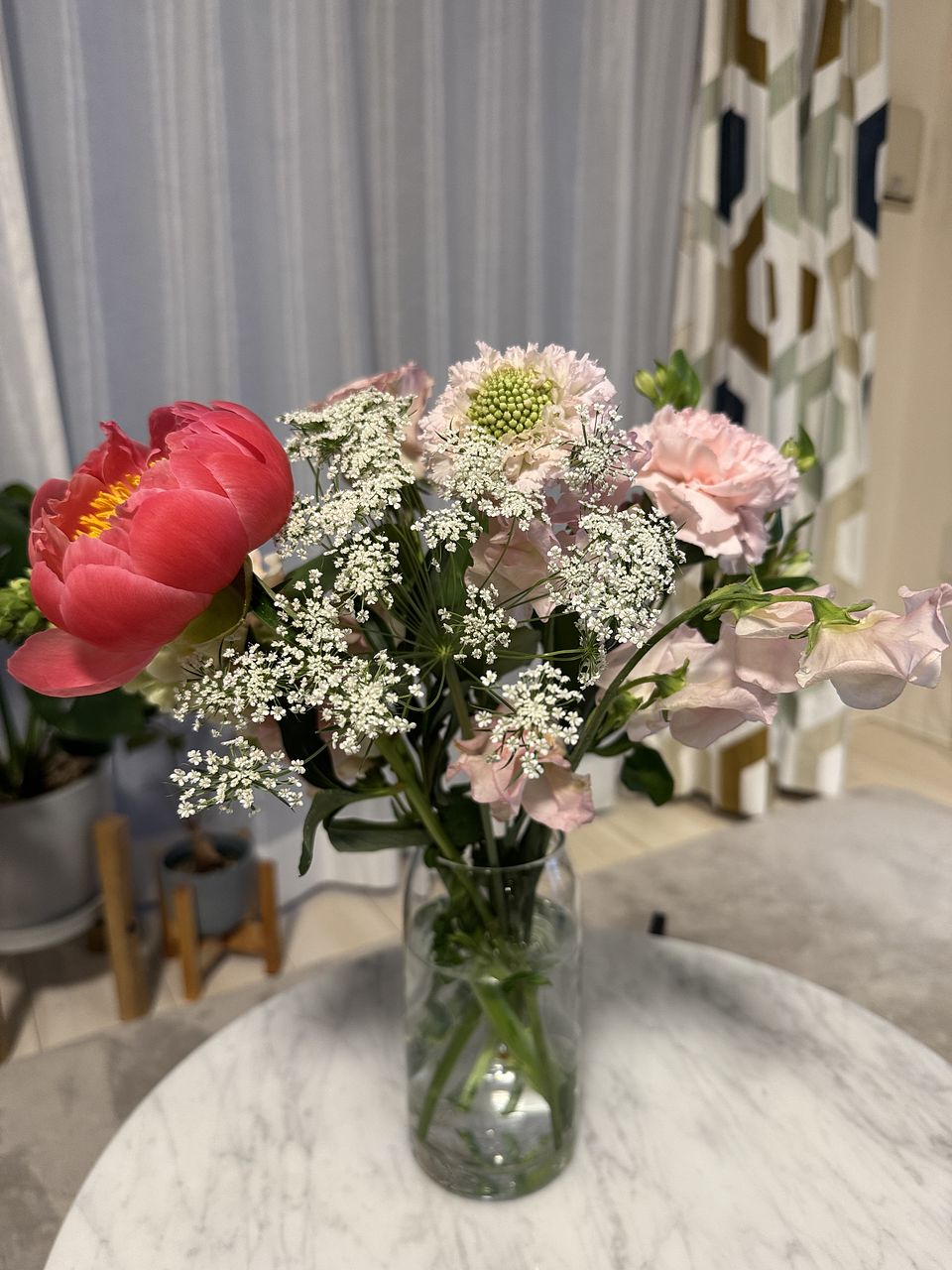香りも良く春にぴったりの組合せの花達でした。芍薬がひときは目立っています😊