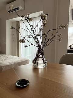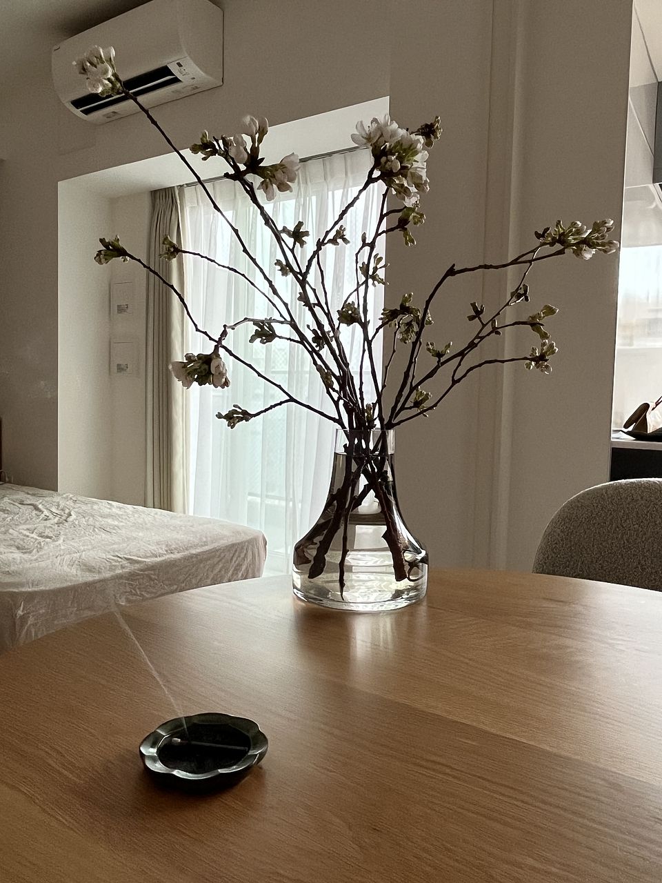 春の季節の枝物「吉野桜」🌸ホワイトやごく淡いピンクの花色で先端にぽんぽんと、まりのようにつくのが特徴です。