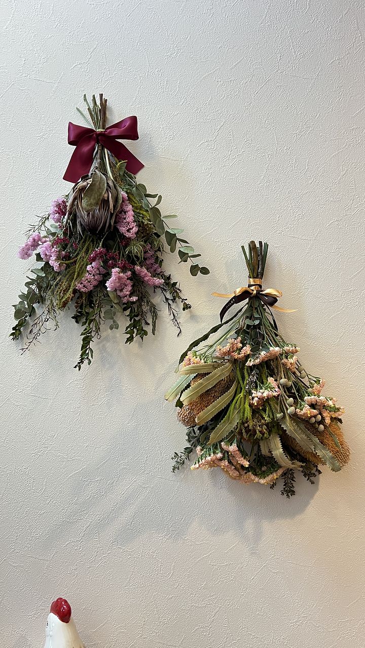 💡スワッグとして楽しむ場合は、届いてすぐにドライにするときれいな状態で仕上がります。もちろん、お水につけて数日花器に飾って生花の状態を楽しんだあとにスワッグにしてもOK。ぜひお好みでアレンジしてみて😉※輪ゴムで留めた状態でお届け。紐などはお好みでご用意ください。