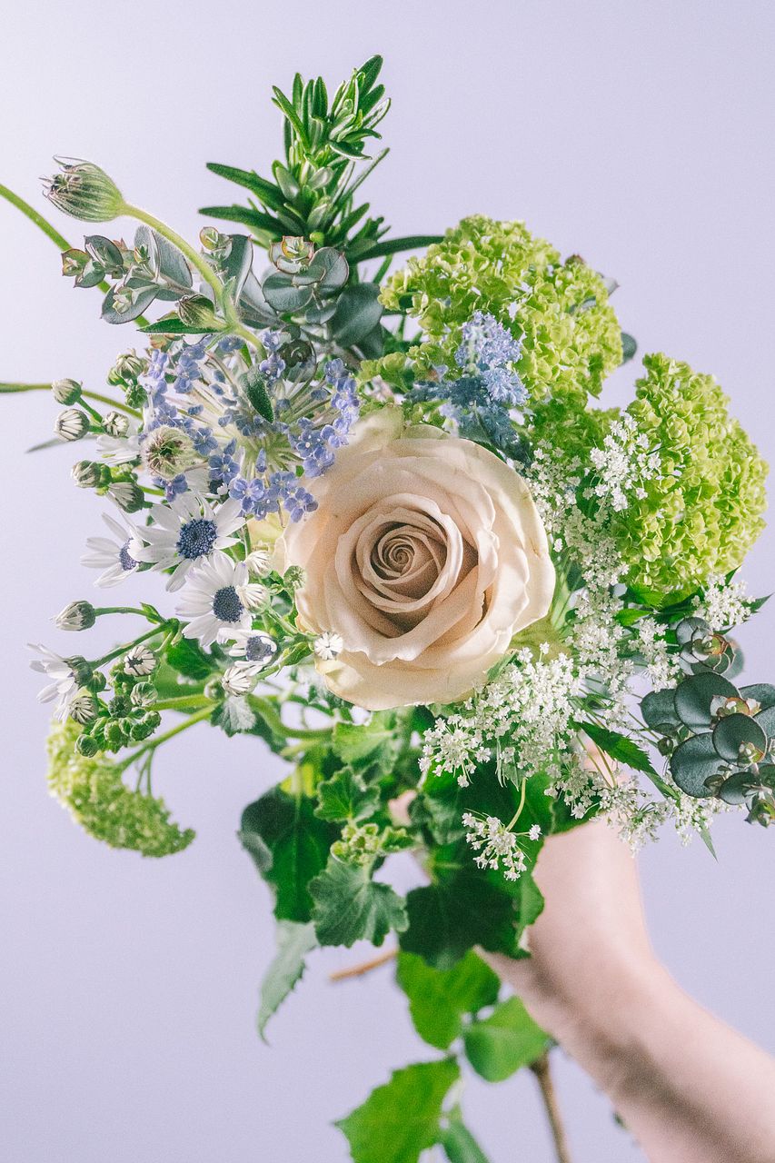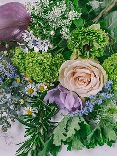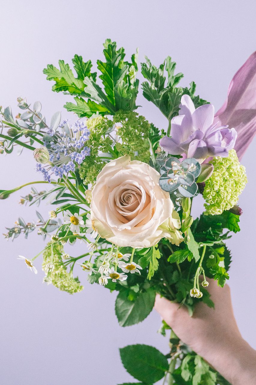 ハーブのやさしい香りとブルー、パープル、グリーンの色合いが心地よいブーケ👒