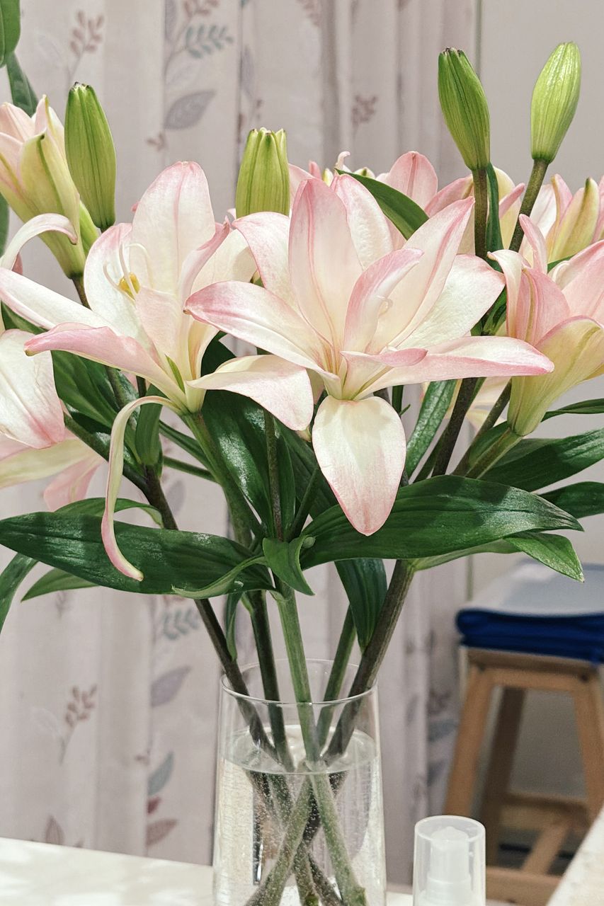 こんなにたくさんのゆりを買ったのは初めてです。 お値段が安い 蕾で届き、2日、4日目と咲いていき、とても綺麗です。 色もピンクで癒されつつもテンションがあがります🤍