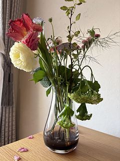 ボリュームからも花材からもあまりお得感を感じませんでした。スプレーバラも4輪とも満開で、花持ちもあまり良くなさそう。flowerさんのお花はもう何十回も買って満足しているのですが、今回はちょっと残念でした。