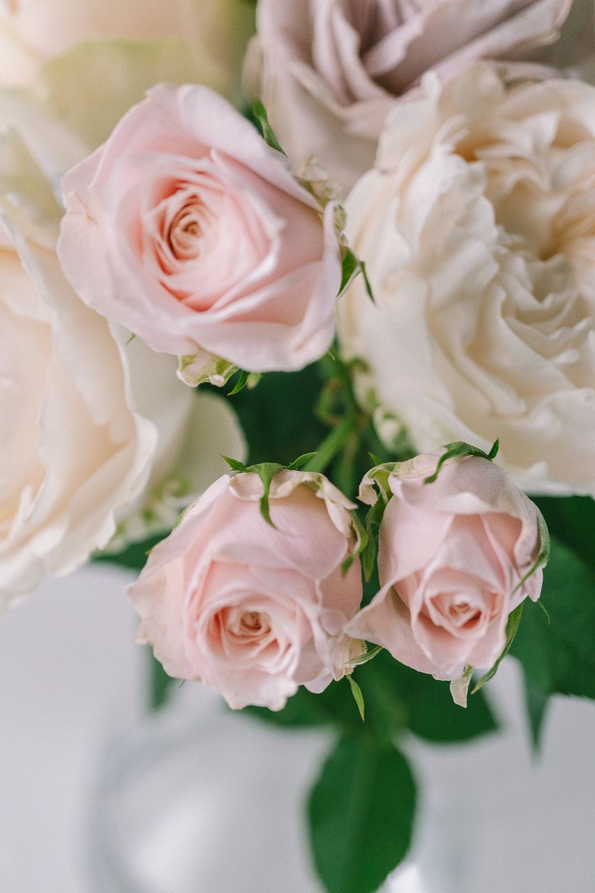 ふりっふり!美しい咲き方の「オール4ピュア+」や希少なホワイトグレーの「シュエルヴァーズ」などニュアンスのあるホワイトやベージュピンクカラーのバラを束ねました🤍🩰