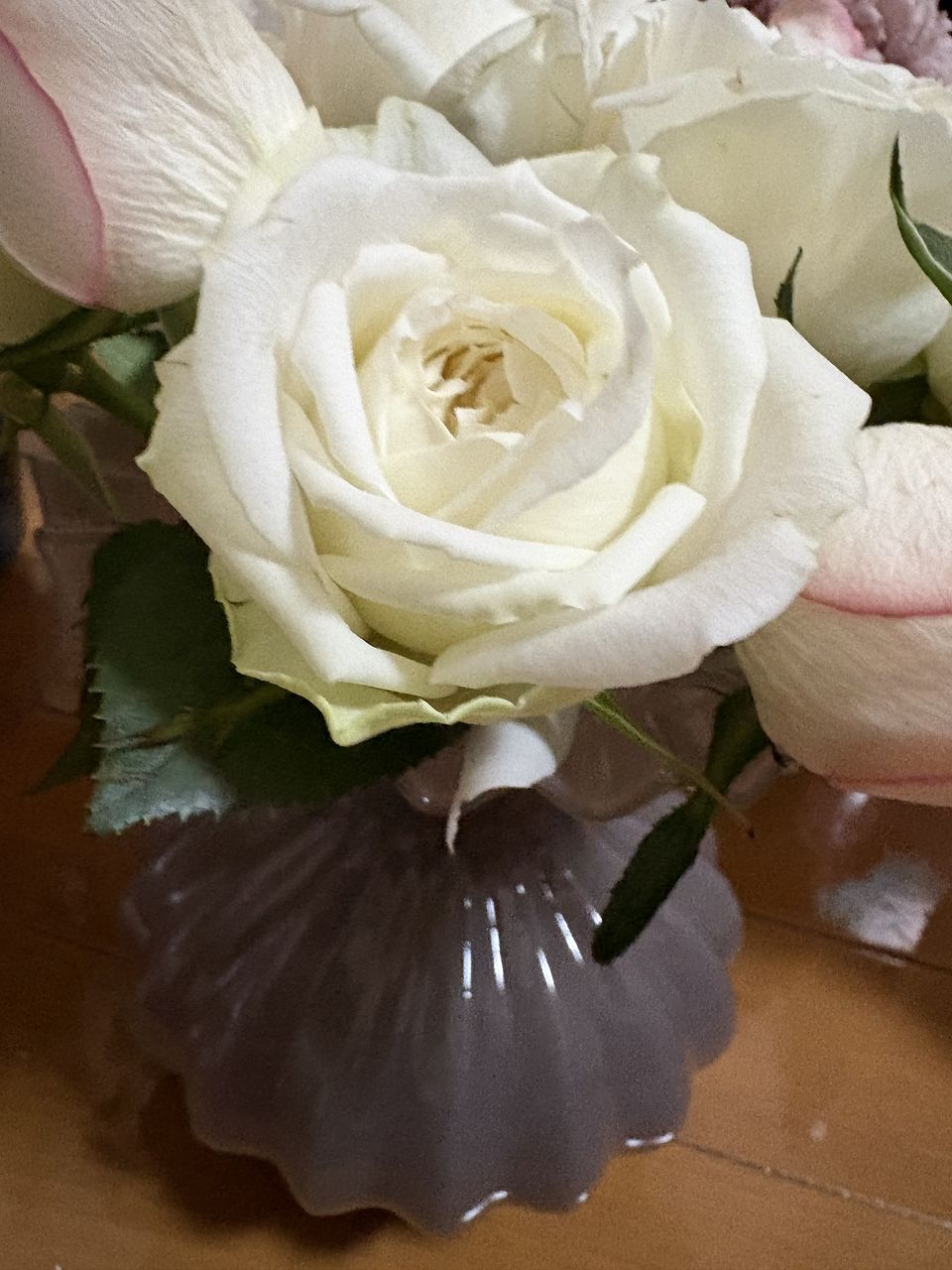 とても香りも良く、真っ白なバラで素敵でした。 家にグリーンの葉物があったので組み合わせて飾ってみました。癒されます🥰