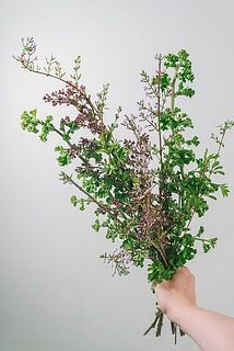 みずみずしいハーブと合わせたブーケは空間にふんわりとやさしい香りを広げます。