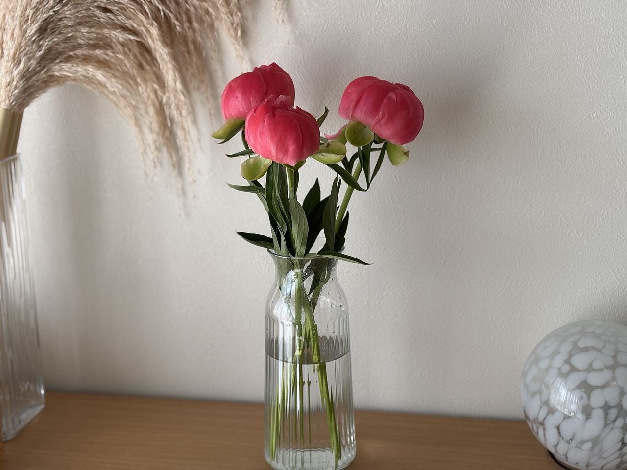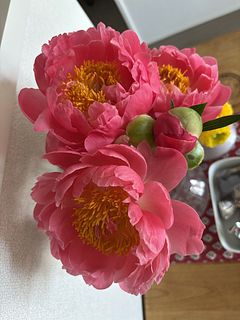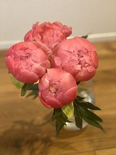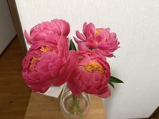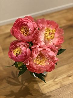 可愛い💕ヤッパ芍薬大好き💕この色は初めて購入したけどとても良かった!けど、部屋が暖かいから届いて箱開けたら既に3輪開き気味で花瓶に生けて1時間もしたら全開😅この調子だと何日持つかなぁ💦一輪だけ蕾で届いたからその子がユックリ花開いてくれたら良いなぁ