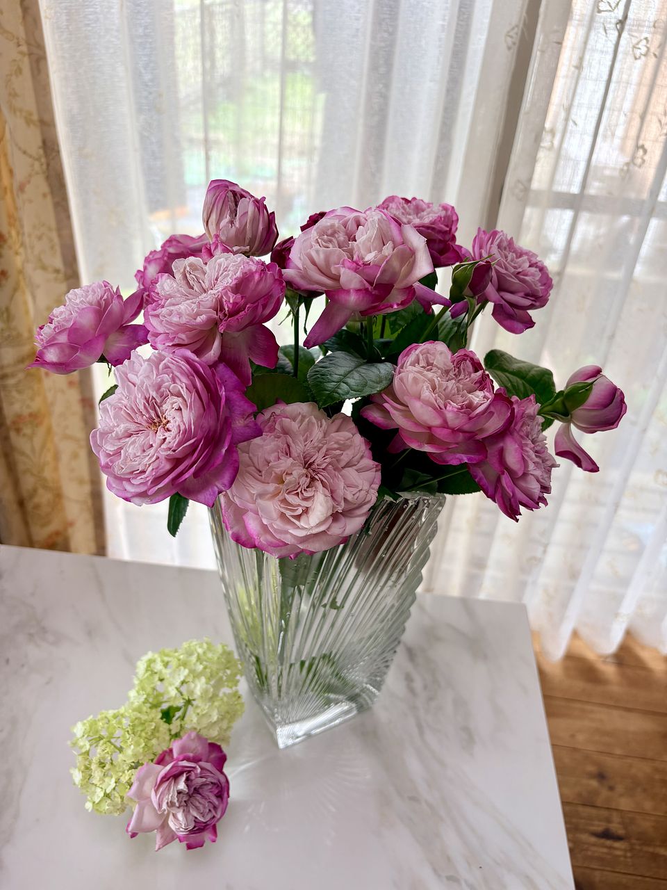 フレグランスローズが気になり過ぎて、購入したばかりだというのにポチッとしてしまいました。 届いた時はさほど香りは感じなかったのですが、水揚げの後に活けたら暖かいからかポンポンと花が開き、大好きなローズの香りが漂ってきました。 花綸のかわいさもボリュームも十分で視覚嗅覚共に癒されています。