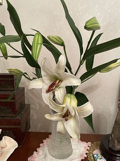 カサブランカが出るといつも購入しています。 いつもはひと枝に5つの💐がついているのですが、今回は初めて4つでがっかりしました。