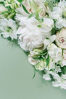 白い芍薬は品種によってほんのりピンクに色づいていることも。ホワイトや柔らかなグリーン系のお花をセレクトしてお届けします🌱
