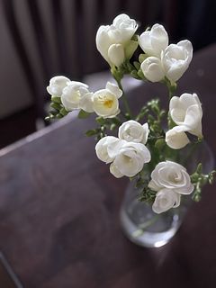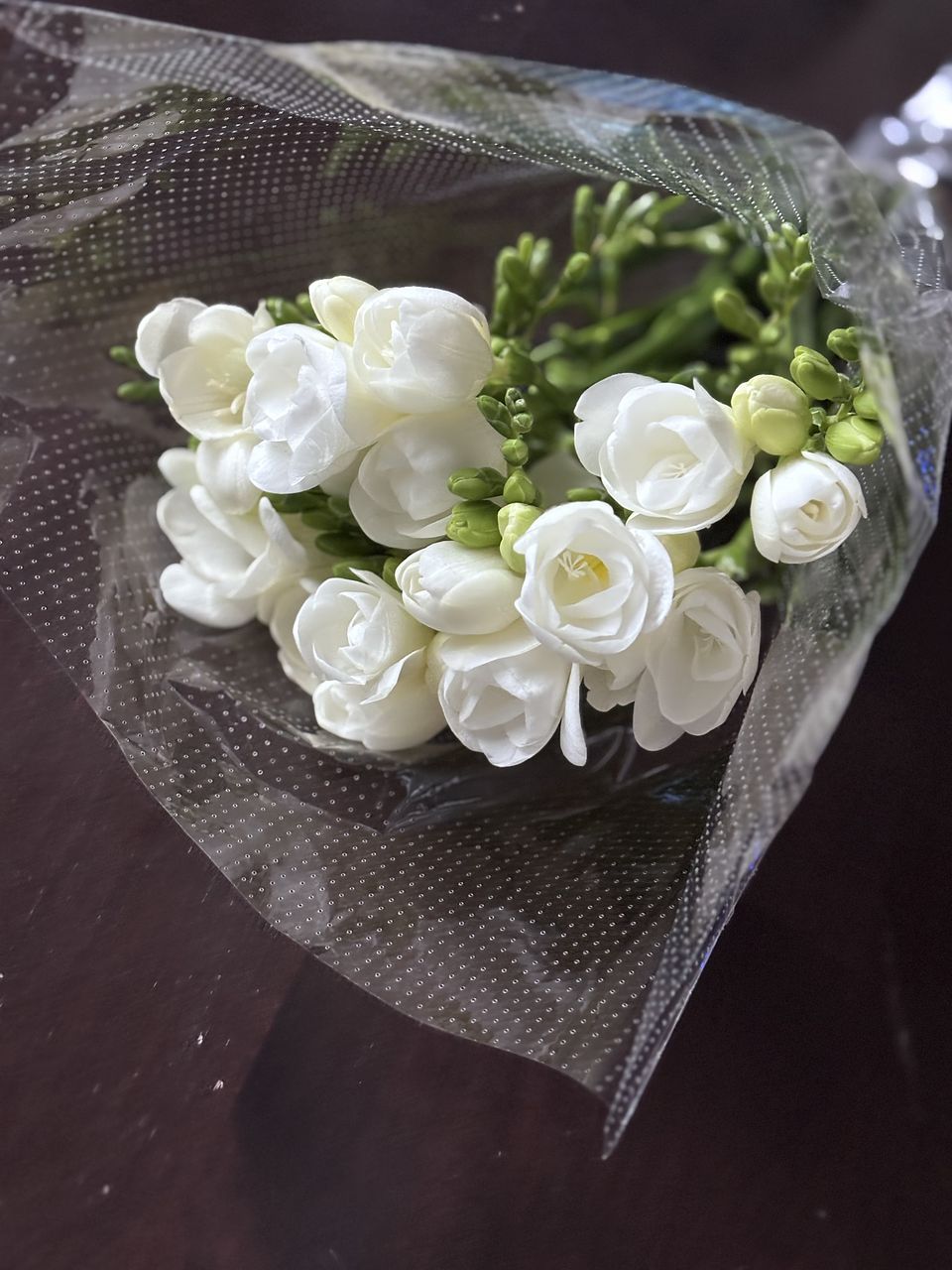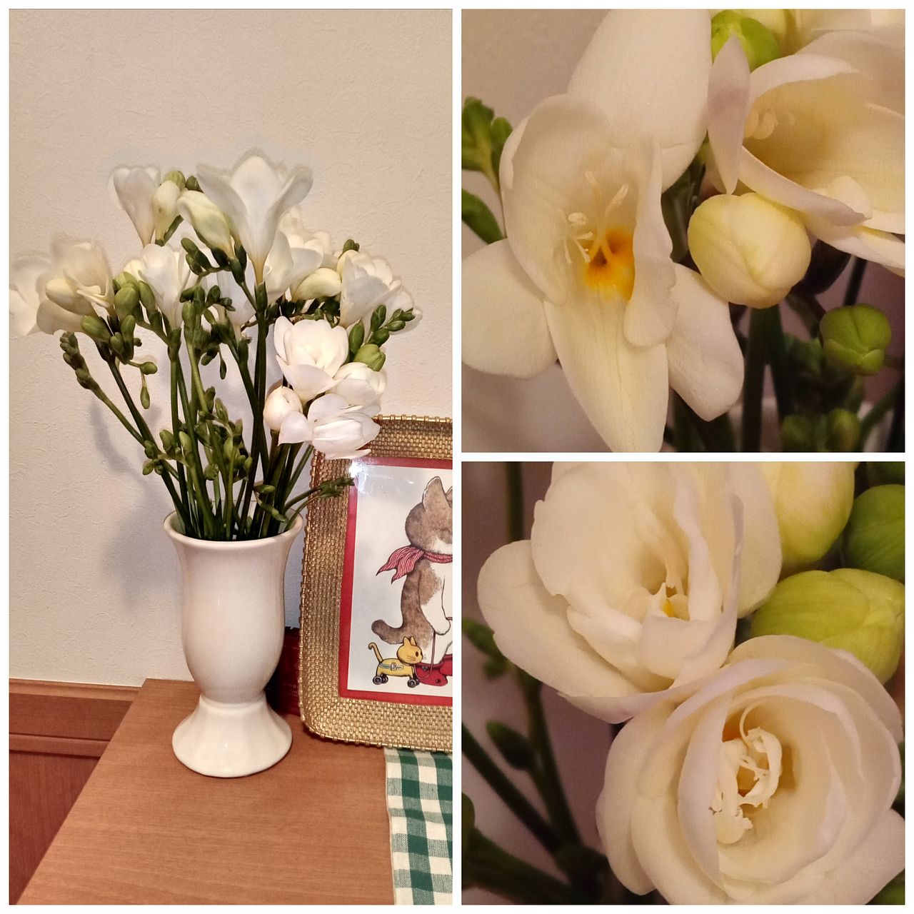 白いフリージアは初めてです。香りが大好きです。お花が大きくて華やかさがあります。蕾が咲くのが楽しみです。