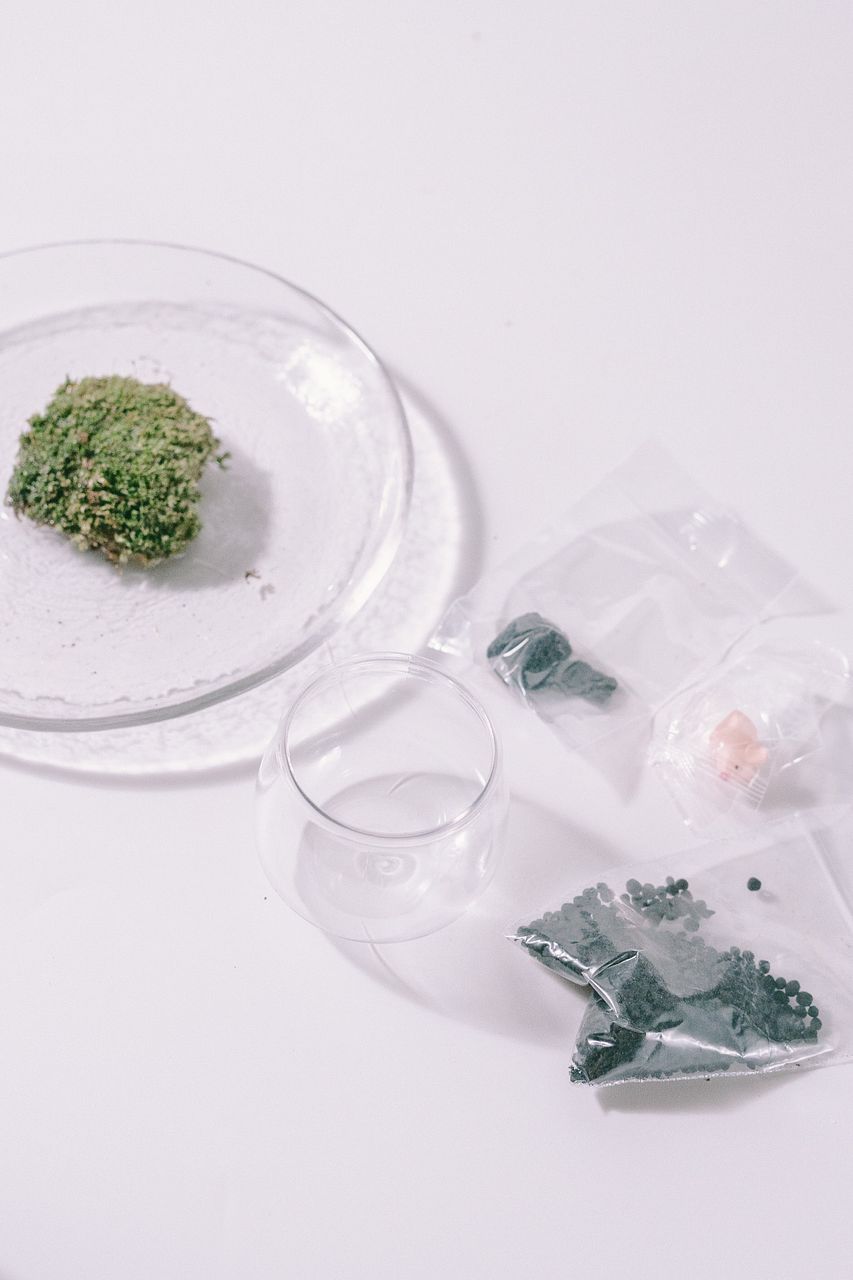 セット内容:ミニボトル容器、ソイル(土)、乾燥苔、ミニチュアフィギア(ランダム)、レイアウト石(サイズ、個数ランダム)