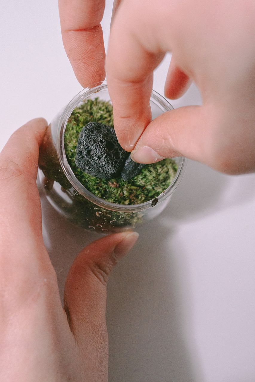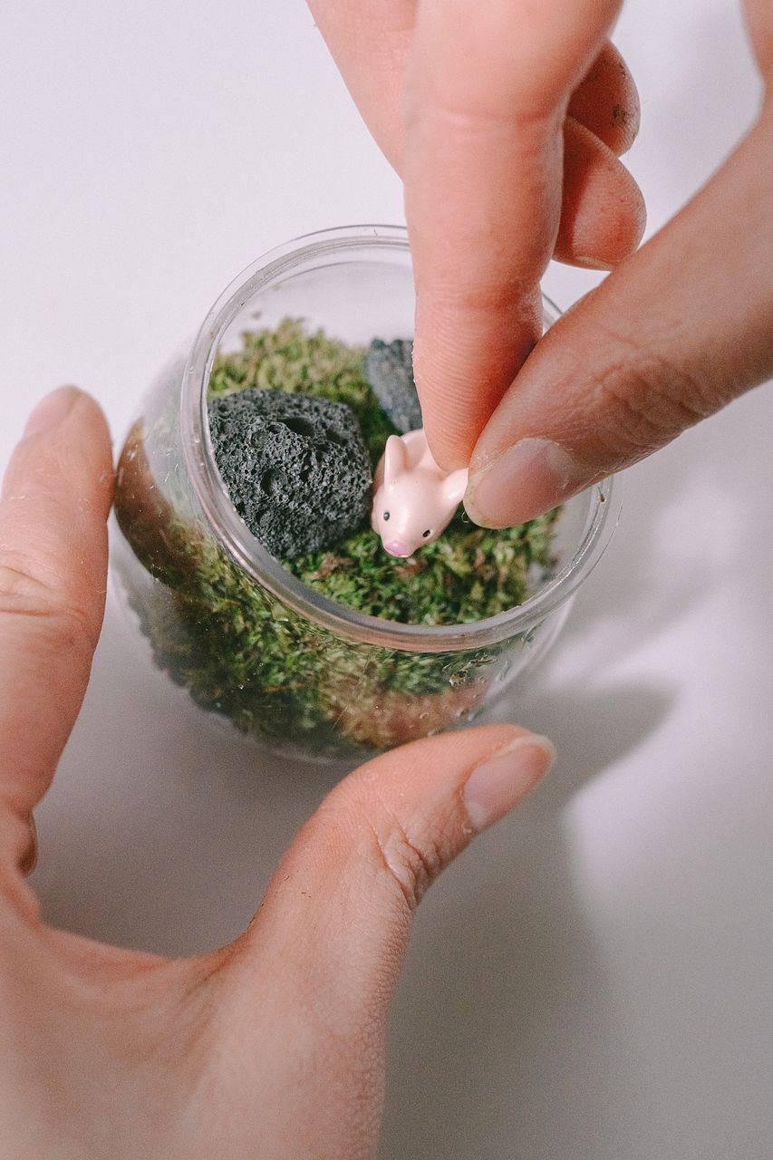 手のひらサイズの、小さな苔テラリウム。