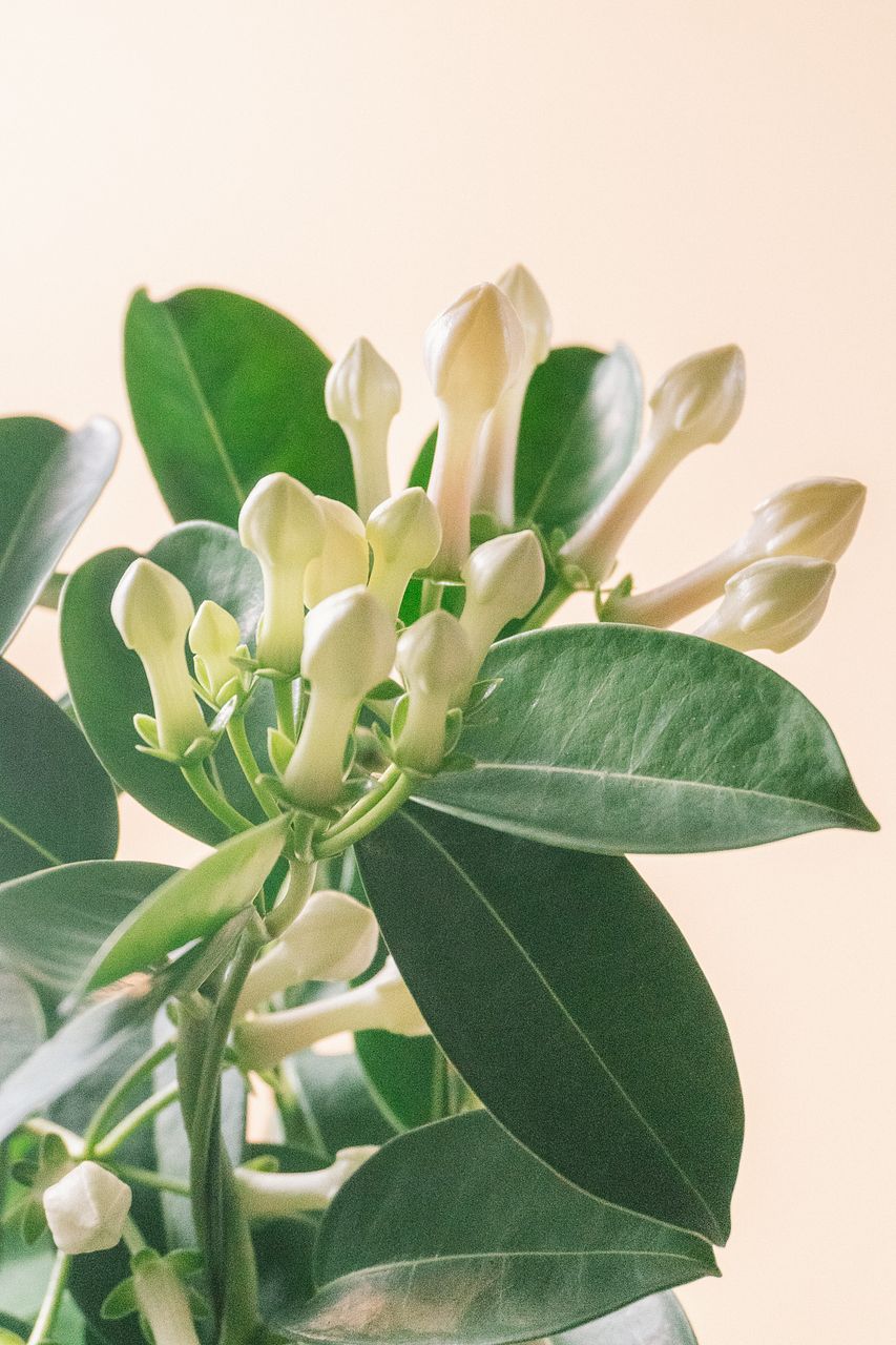 ふっくらした純白の花がかわいい🕊️ジャスミンに似た良い香りの「マダガスカルジャスミン」が入荷しました。欧米ではブライダルブーケとして使われることも。高さは50cmほど。