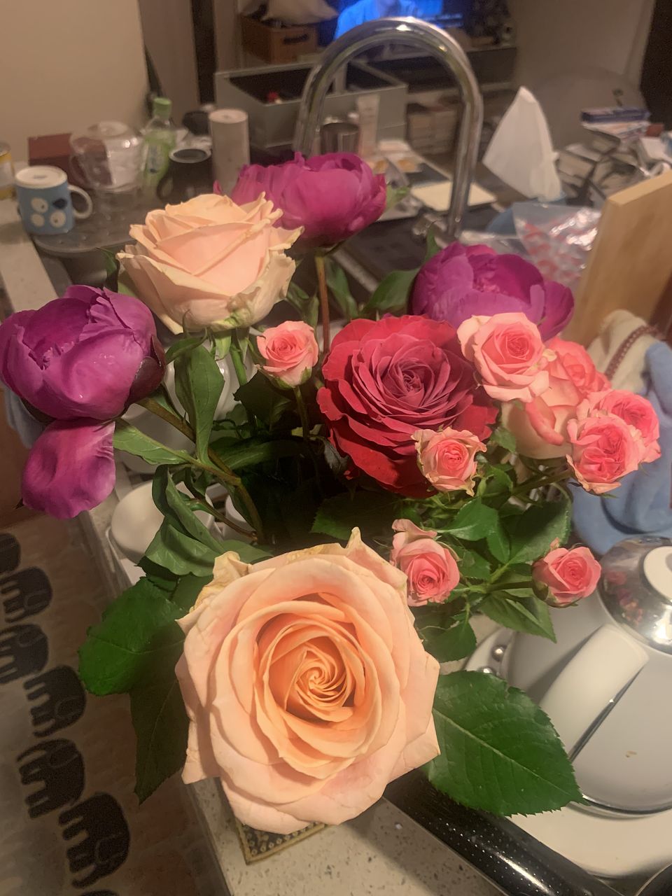 芍薬とバラを合わせた贅沢なブーケ😍