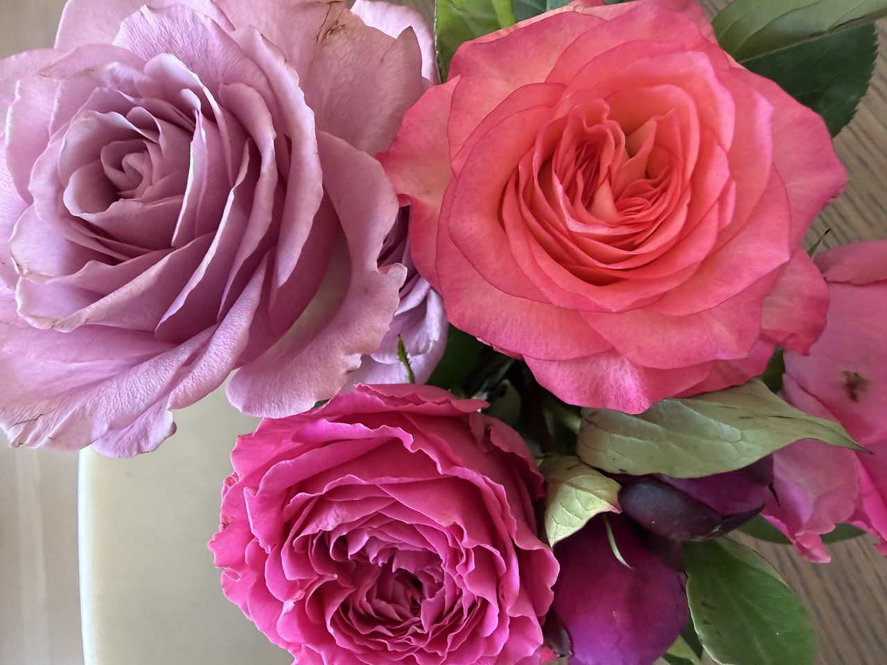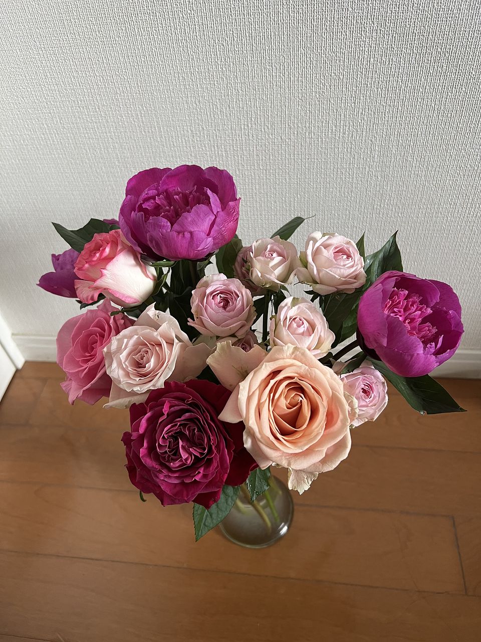 適度なボリューム感で色合いがとても美しかったです。全部生き生きとしていて芍薬も綺麗に咲きました。この中の薔薇が一本今(5月4日)まだ元気に咲いています。