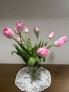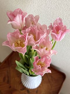 先日、ミックスのチューリップを頼んだときの1番のお気に入りだったピンクのフリフリ🩷が10本!! 嬉しい! 今期、チューリップ最後かな。。 大切にします🤍🌷🤍