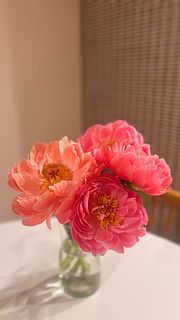 半八重咲きのコーラルカラーの芍薬が久しぶりに入荷🧡「コーラルチャーム」を4本お届けします。