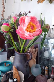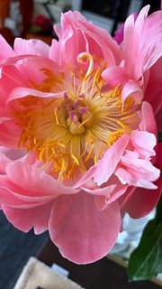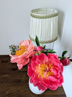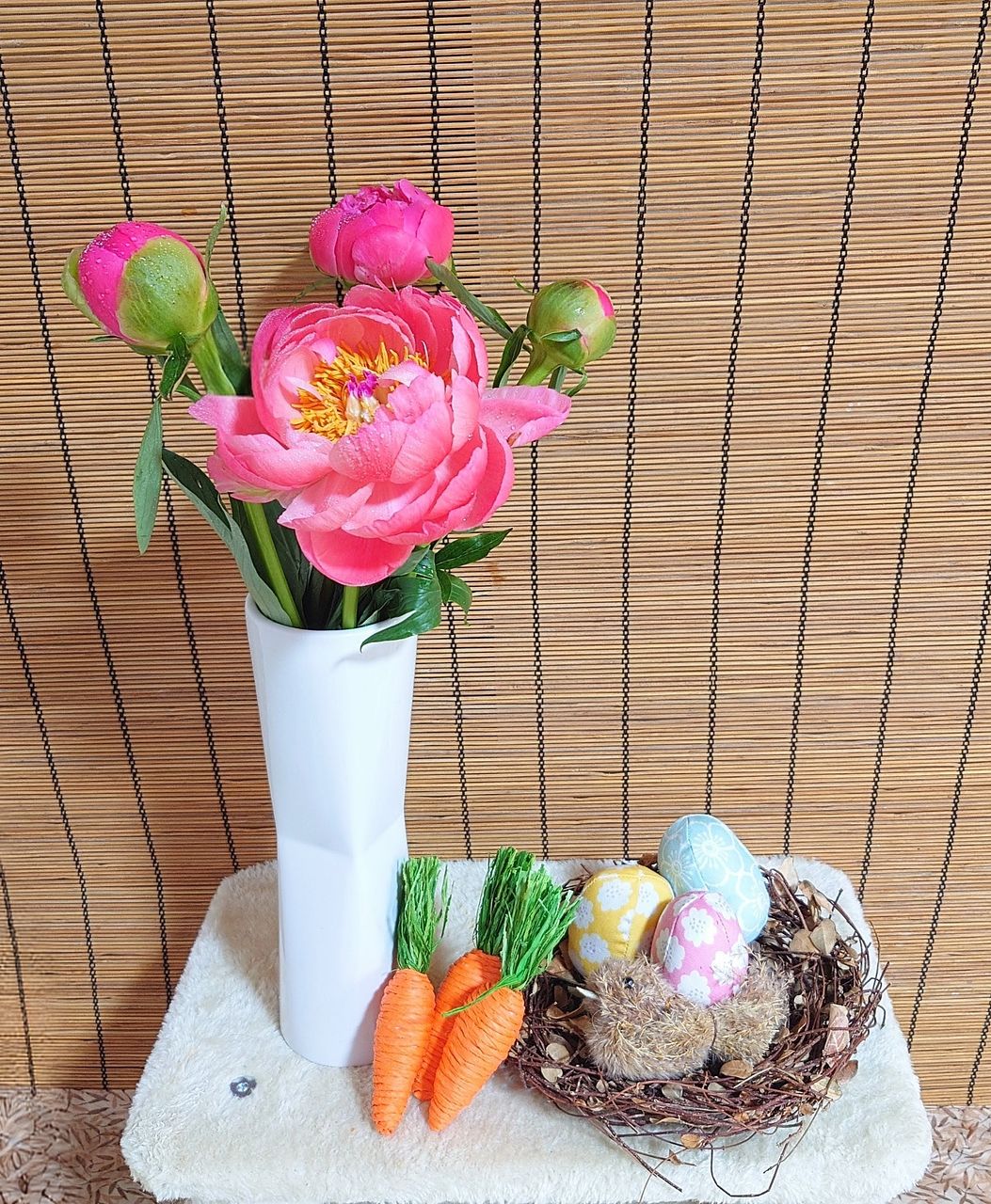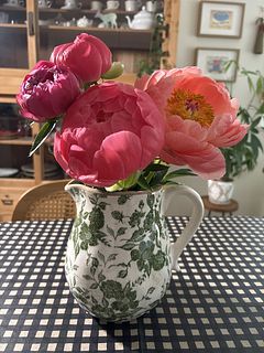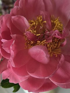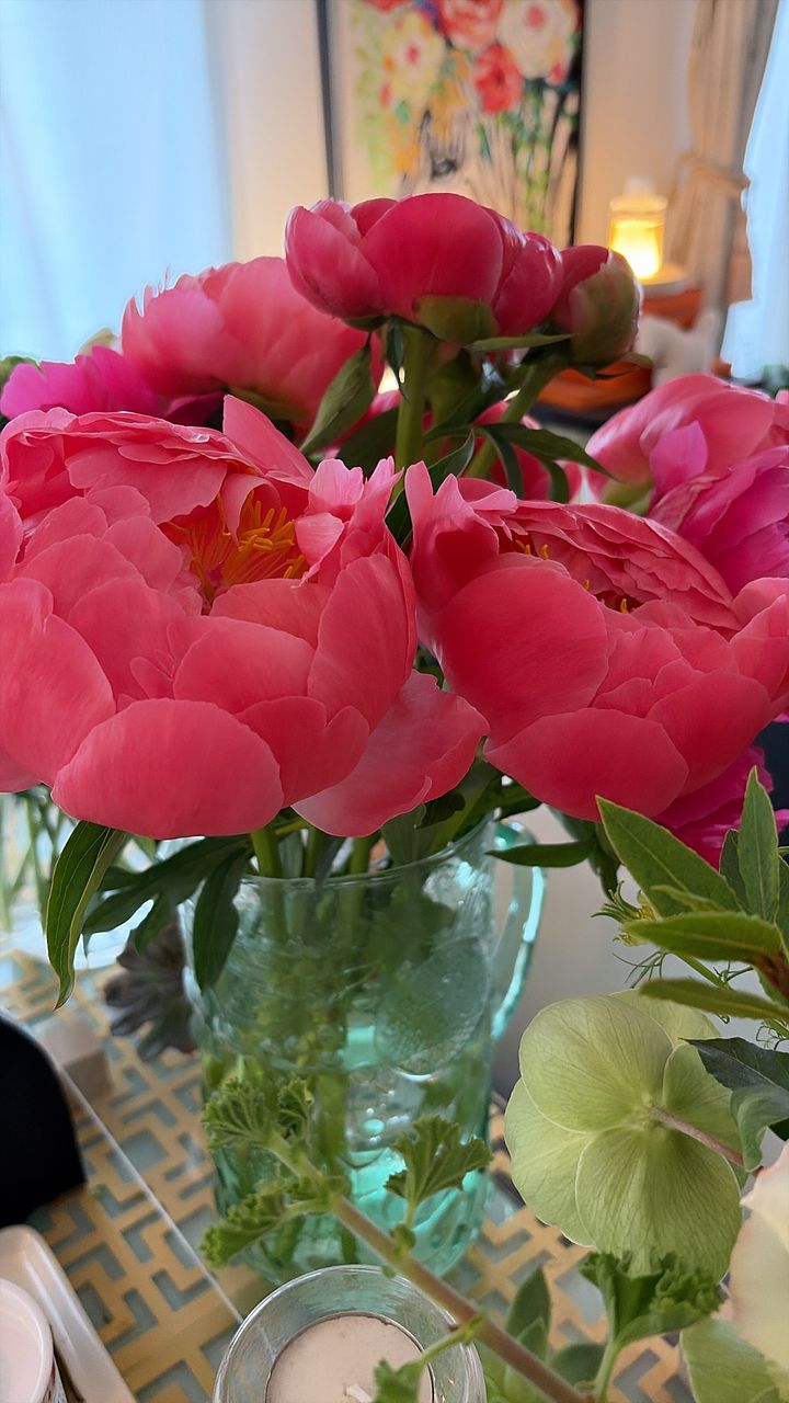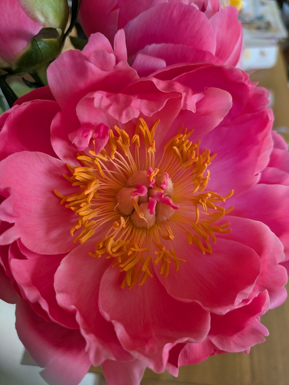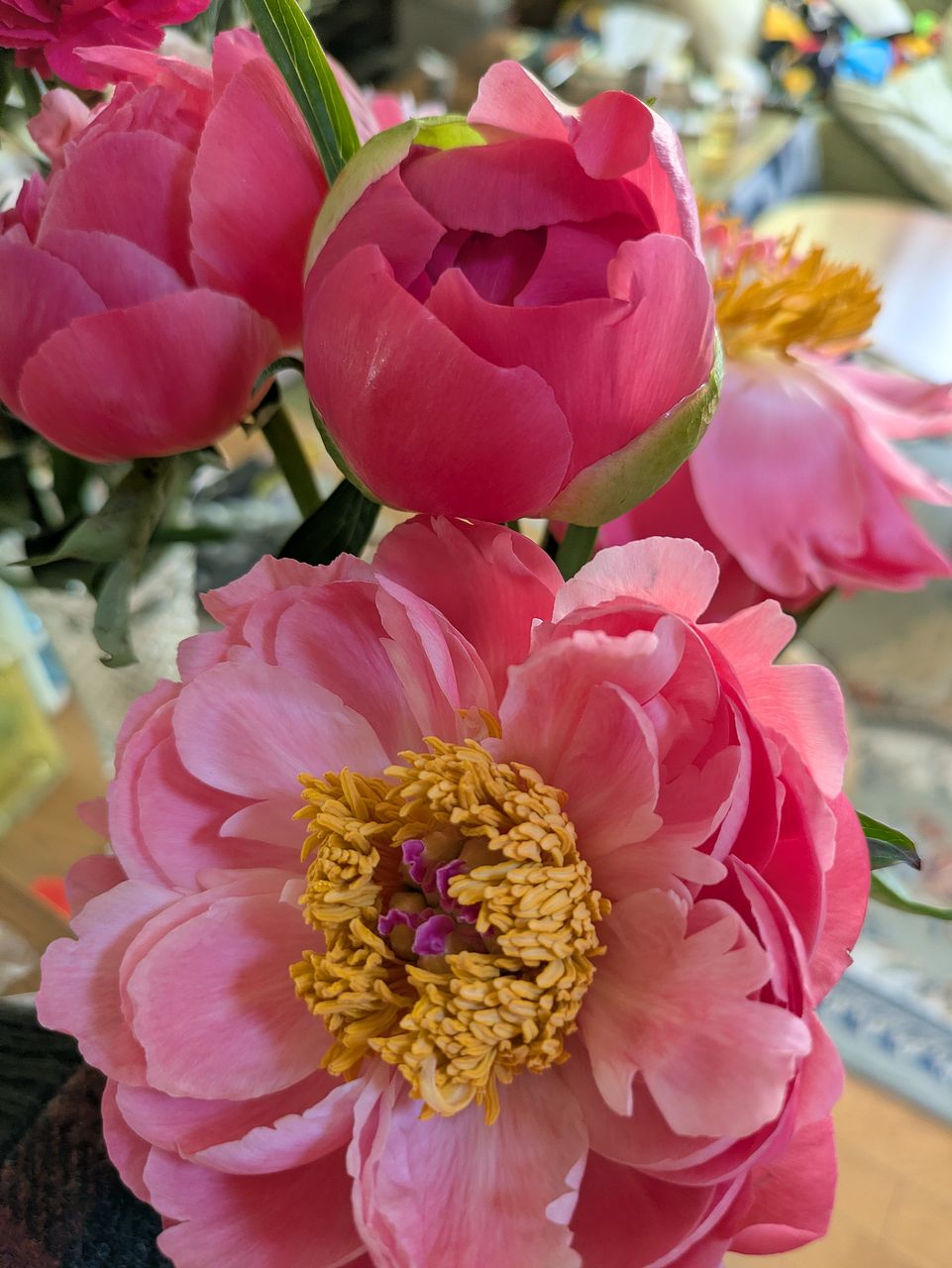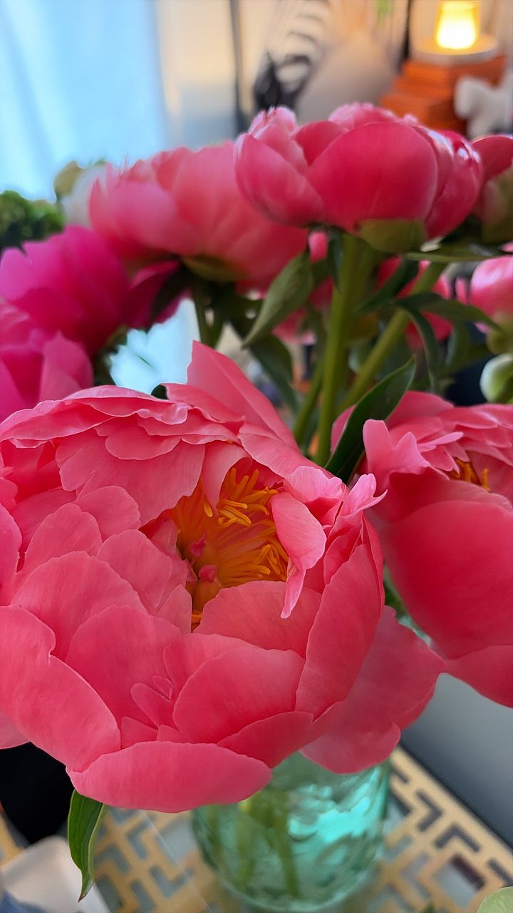 昨日届いた時は蕾が3輪、開きかけが1輪、元気な状態で届きました♪固い蕾の状態ではなかったので、蕾は触らずに水揚げだけしっかりして、北側の涼しい玄関に置きゆっくり開花するのを待っていました☺️ 今日1輪が完全に開いたので、1番目にしやすいキッチンに、3輪はやや涼しいリビングに置き、それぞれ開花のタイミングをゆっくりさせる為に場所を選んで置いてみました。 この時期を一年で一番心待ちにしている位、芍薬は大好きな花です。芍薬を楽しむようになって15年程になり、自分でも黒岩の芍薬を鉢で育てるくらい大好きです💕エッジドサーモンが私の大好きな品種NO.1なので、今年は何回飾れるかしら?と今から楽しみです♪😊