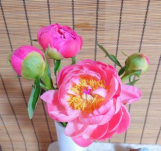 1本は既に咲きかけていて、あとの3本も蕾がふっくらしているので全部咲きそうです! とても綺麗な芍薬です。