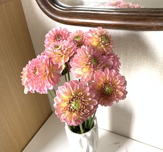 写真どおりに、ピンクとイエローが入り混じるとっても素敵なミニダリアでした! 花束や、アレンジを華やかにしてくれます♪