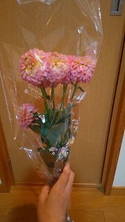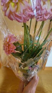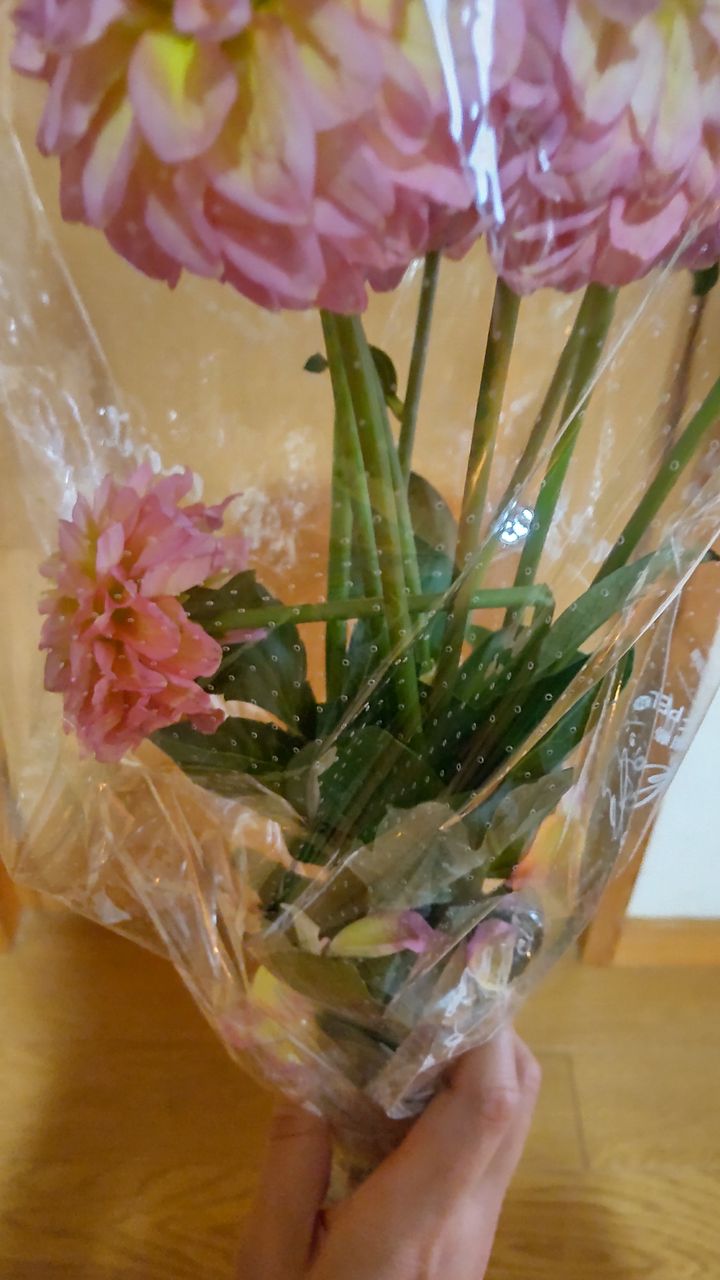 なんか写真とは違う、萎れた感じでの到着、まだ水揚げ中なので少しずつ元気になってくれる事を期待しますが。 ダリア、頑張れ〜!