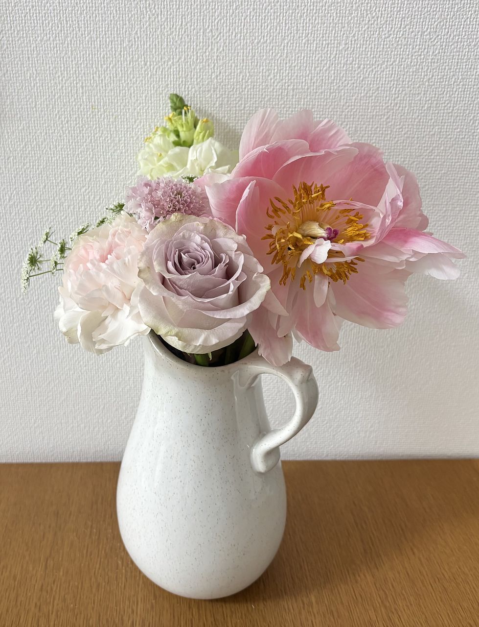 芍薬は咲きやすい品種のため、配送中に開花が進むことも。その表情も含めて、お手入れをしながらお楽しみください。