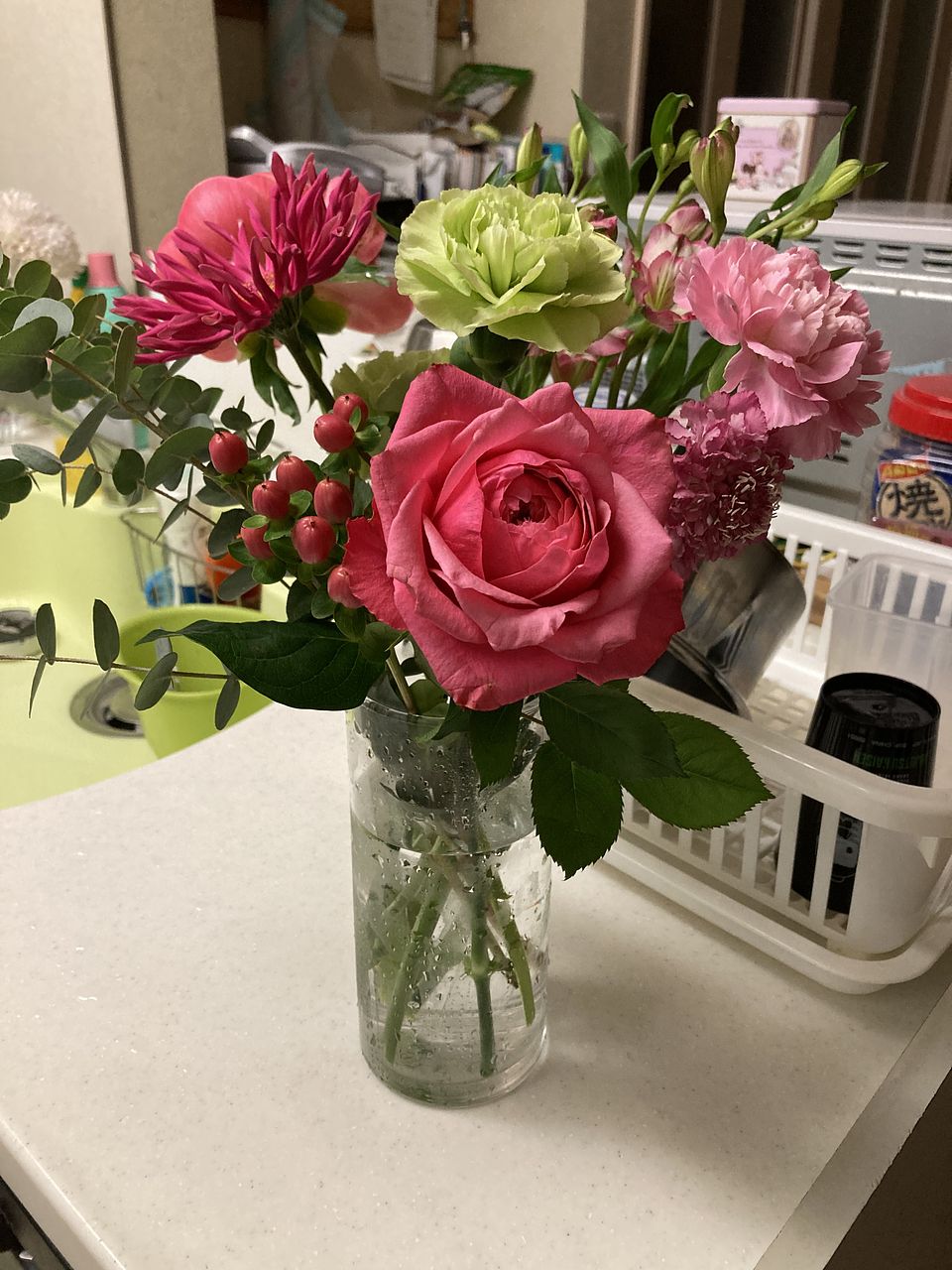 ライトグリーンのカーネーションやアルストロメリアを合わせ、甘さの中に軽やかさをひとさじ。