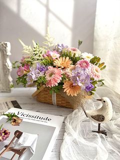 かわいい色合いで思ってた通りで良かったです。 カーネーションやガーベラは花もちが良くて次に欲しくなったお花を注文すると花瓶が足らなくなり一緒に購入しました。花瓶は思っていたより大きめでした。