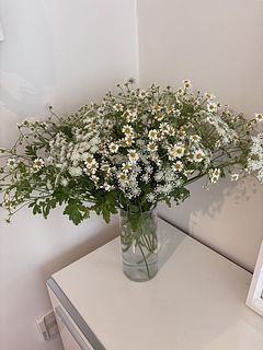 ふわふわゆれるマトリカリア「シングルペグモ」と「ホワイトレースフラワー」をたっぷり束ねました💐