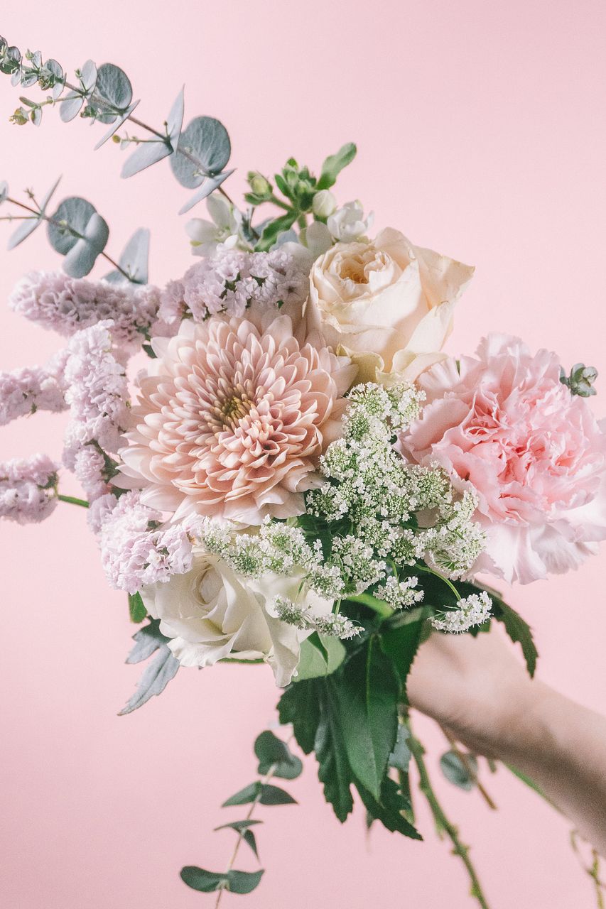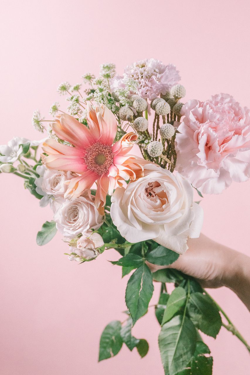 淡いピンクからコーラルピンクのお花をチョイスしてお届けします💐