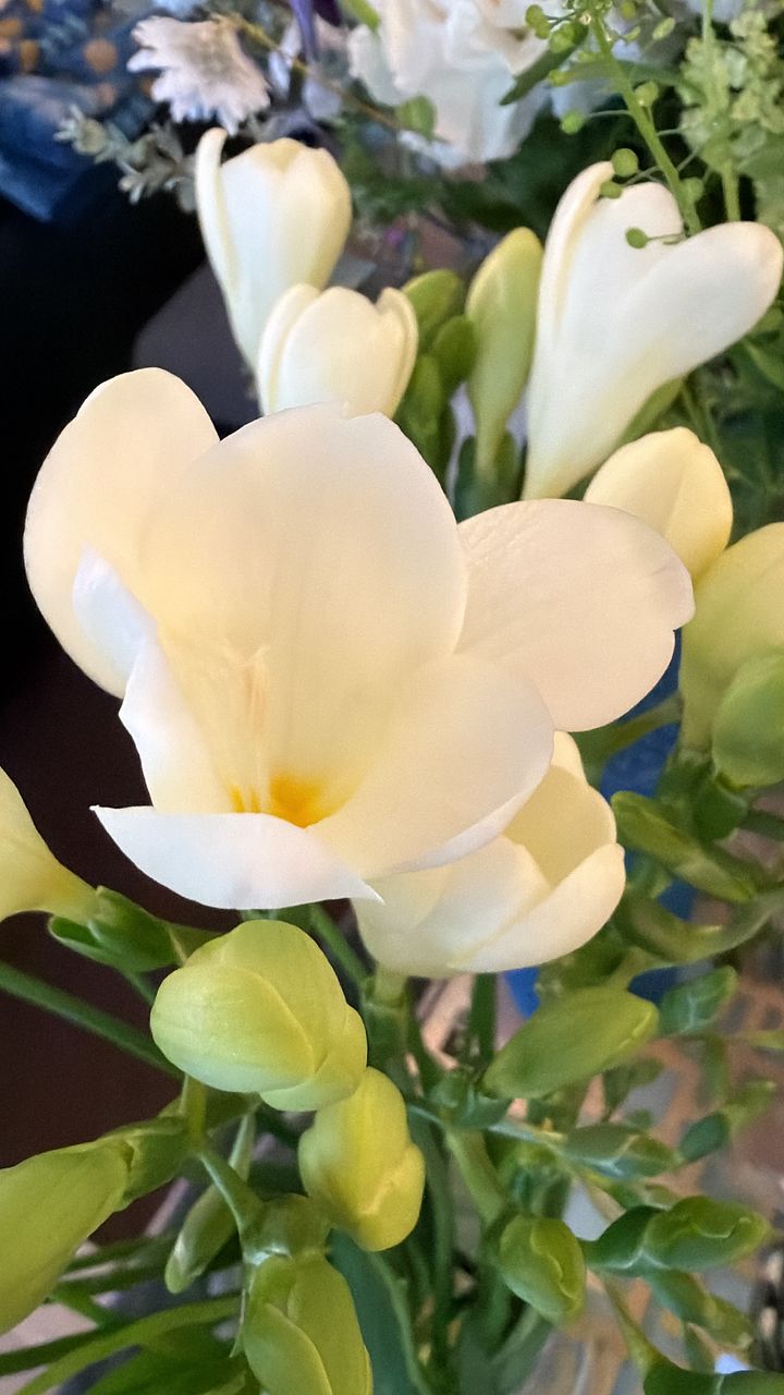 清楚なホワイトのフリージアだけをたっぷり束めました🤍🕊️