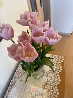 先日、ミックスのチューリップを頼んだときの1番のお気に入りだったピンクのフリフリ🩷が10本!! 嬉しい! 今期、チューリップ最後かな。。 大切にします🤍🌷🤍