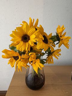 可愛い、ひまわり🌻ありがとう御座いました。 期待通りでした。 早速、活けてみました。