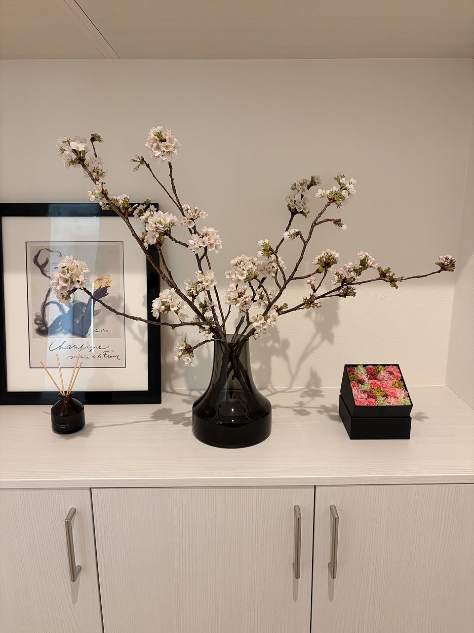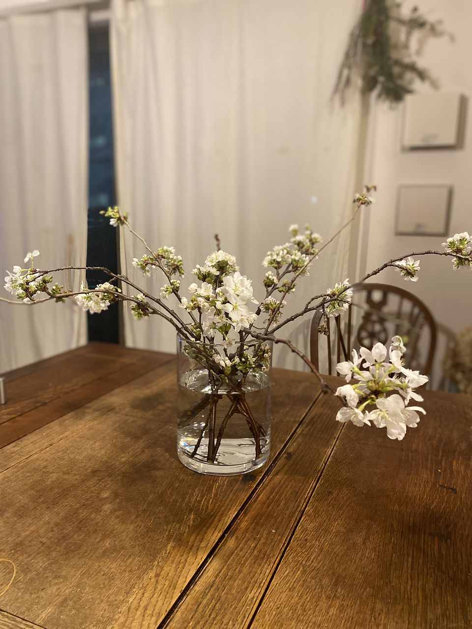 届いて2日ほどで8-9割の蕾が開きました。 花の数が少ない時は、枝をバランスよく飾るのがとても難しかったです。 少しずつ花が開いていくので見ていて飽きず、どんどん愛着が湧いてきます。 初めて自宅に桜を飾りましたが、毎年の恒例にしたいなと思いました。