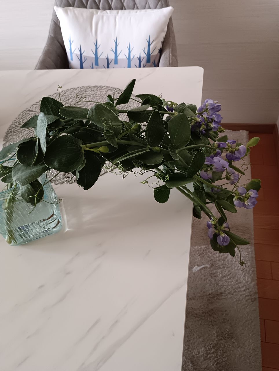 くるくると丸まったツルが豆の花らしいポイントに。動きを活かして飾るのがおすすめ。花もちが抜群で、1〜2週間ほどかけて先端のつぼみまで咲く姿を楽しめます。