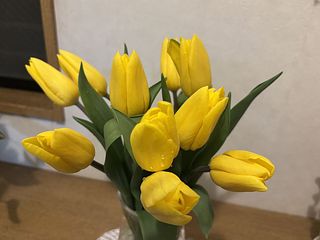 イキイキとしたチューリップが届きました。黄色は元気をくれるので、部屋が明るくなりました!