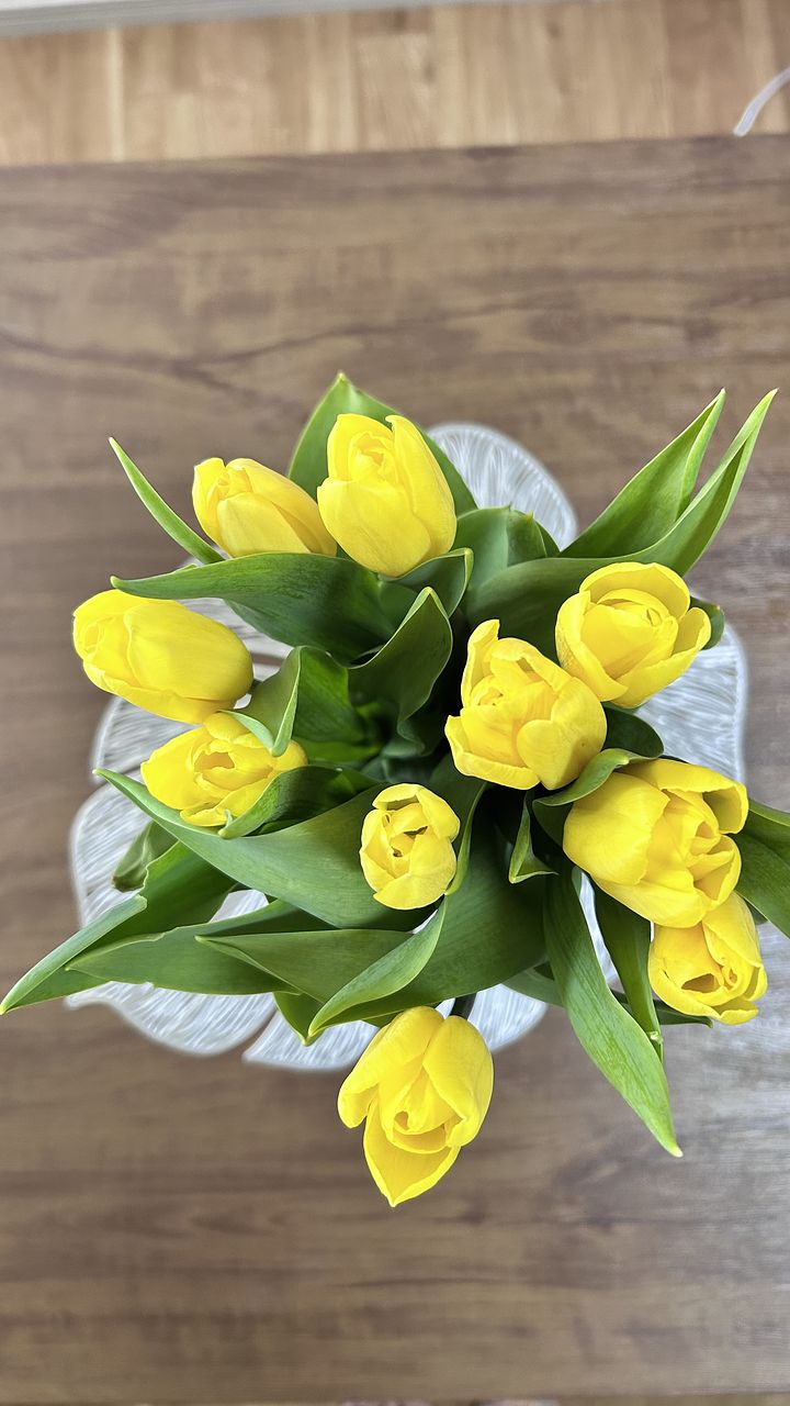 新鮮なチューリップが届きました🌷 10本あるとかなりのボリュームを感じます。ニュアンスカラーもいいけど、こういう鮮やかな黄色🟡は幼心を思い出します。 元気になりそう😀です!