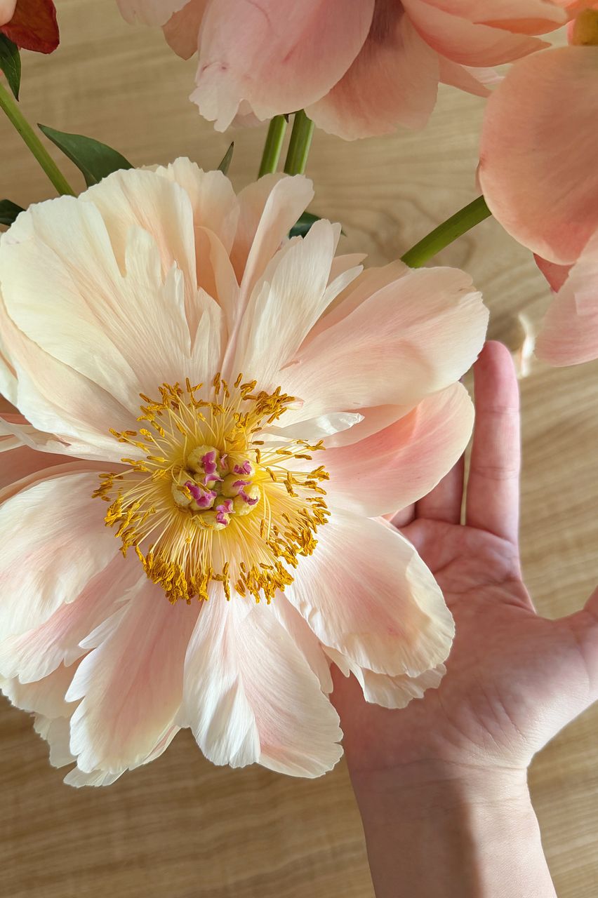 半八重咲きのコーラルカラーの芍薬が久しぶりに入荷🧡「コーラルチャーム」を4本お届けします。