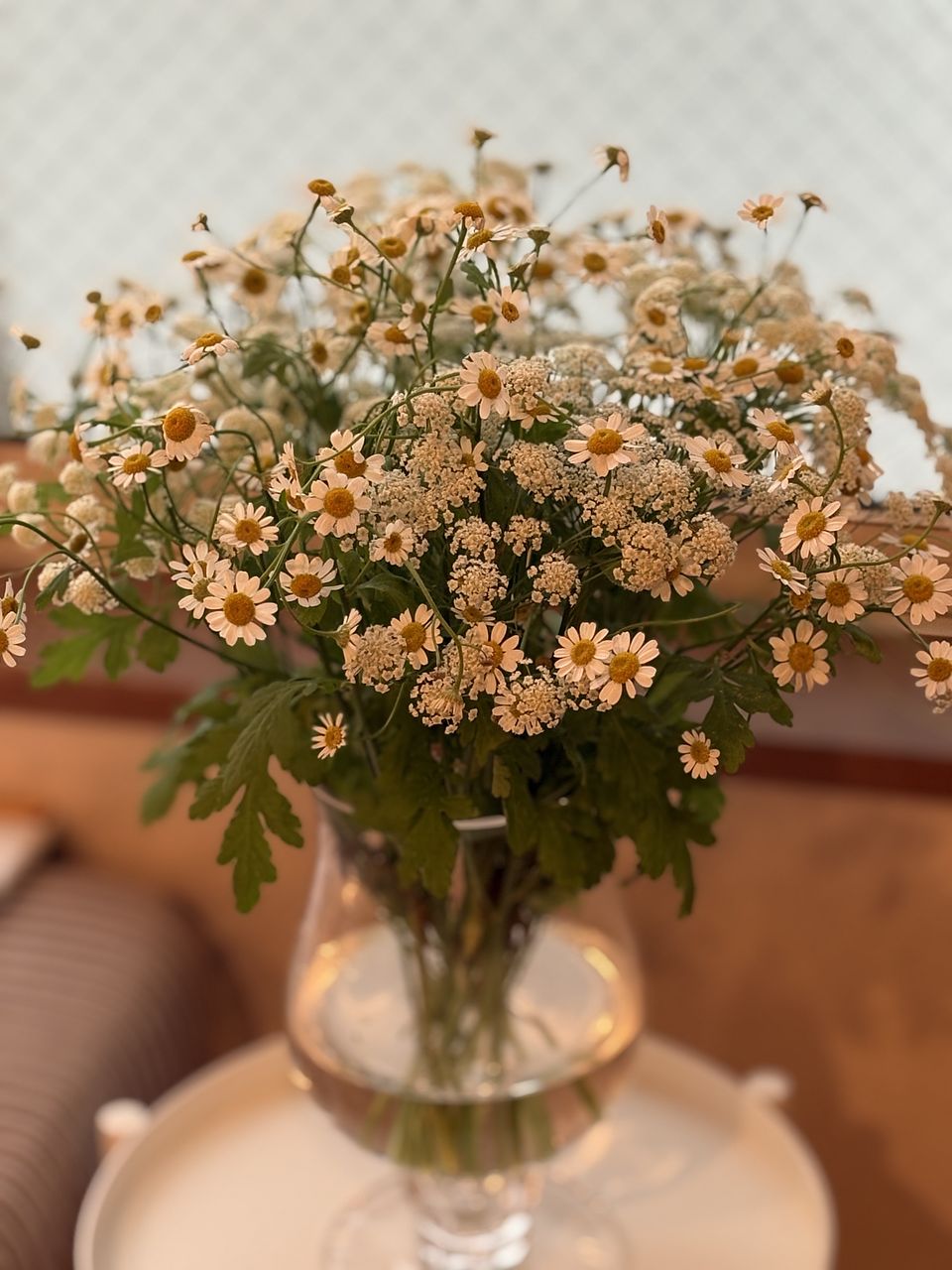 繊細なレースフラワーと小花が可愛いマトリカリア。一緒に併せると本当にこんもり❣️ 別々に束ねられて届くので それぞれ丁寧にほどいて葉を取り除きました。カワイイ〜😍 マトリカリアはそっとほどかないと折れてしまうので時間を作って処理し水揚げします。 折れてしまってもたっぷりあるので安心です😊 テーブルの上に小さな草原ができました♡ 眺めていると心が洗われます🥹 折れたものは小さい花瓶に飾ると これまた可愛くてどんなお花と併せても合う万能なお花で注文して良かったと思いました♪