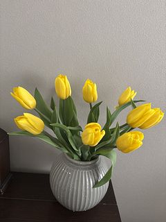 口が広がった花器なら、チューリップの伸びやかな茎を活かしてふわっと飾れます。
