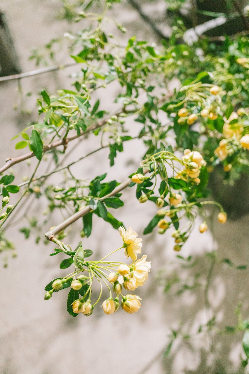 やわらかな黄色の小花が房状に集まる、モッコウバラの切花。