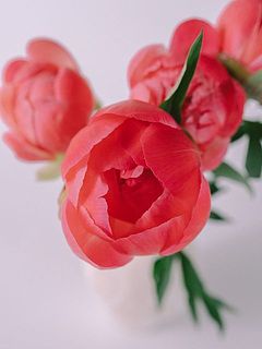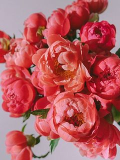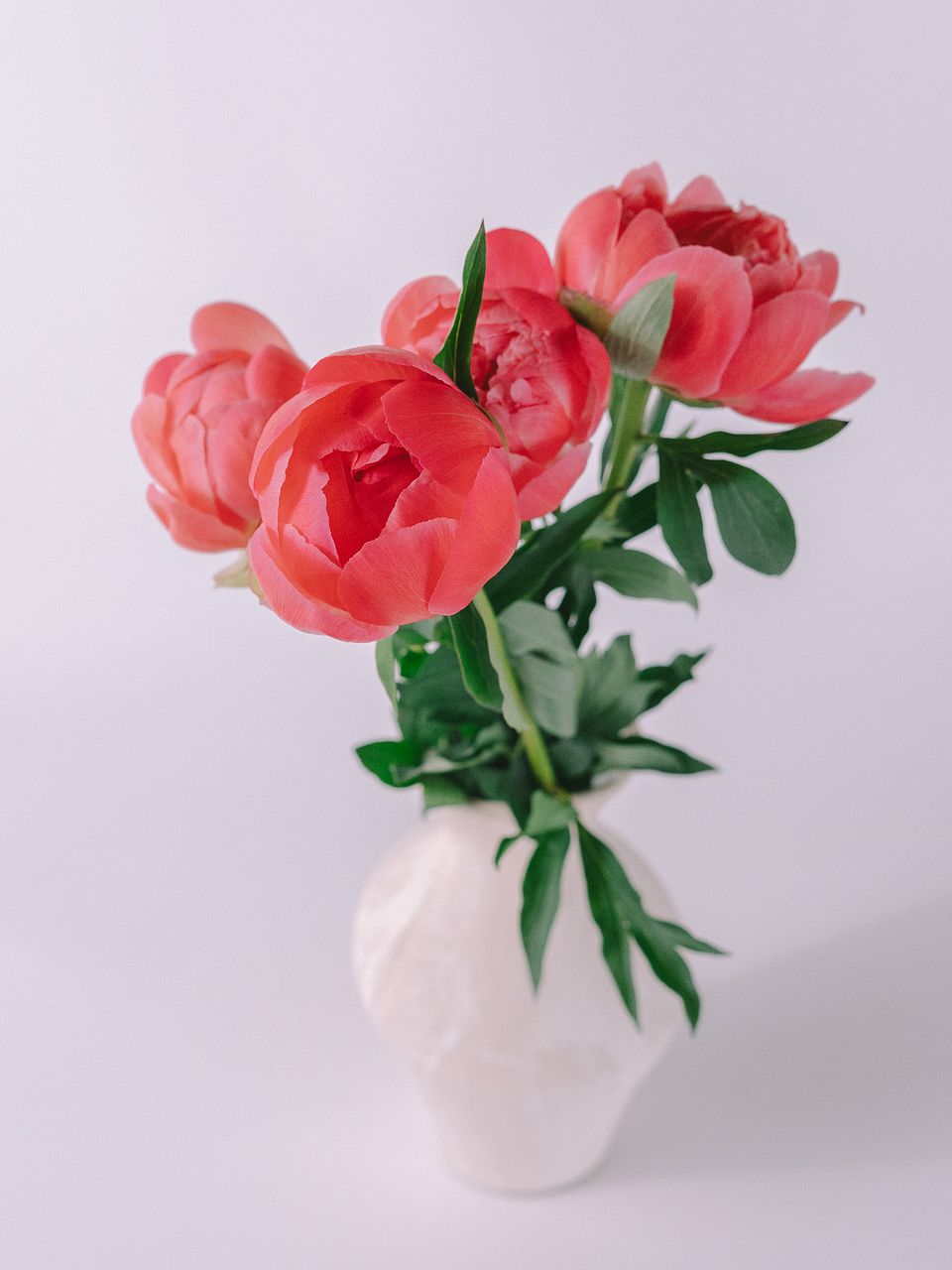 やわらかく花びらがほどけはじめた、コーラルカラーの芍薬「コーラルチャーム」を4本お届けします🧡