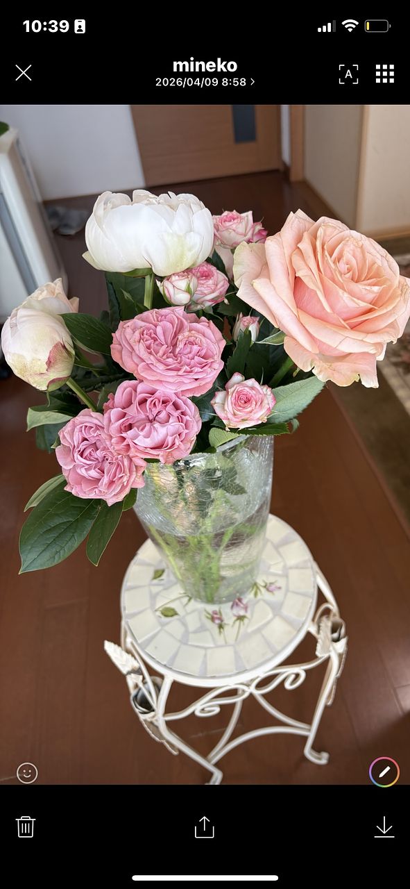 届いてから数時間ですが、開いていなかったピオニーがすでに満開😳